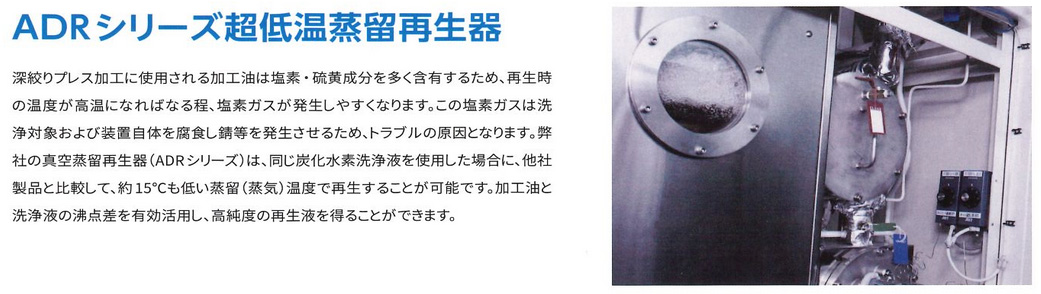 炭化水素を洗浄剤として真空技術を活用して強力に脱脂洗浄を行い、素早く均一に乾燥できる装置です。プレス、精密加工、組立などの製造現場で広く使用され、環境負荷の少ない洗浄機として多くのお客様にご愛用いただいています。