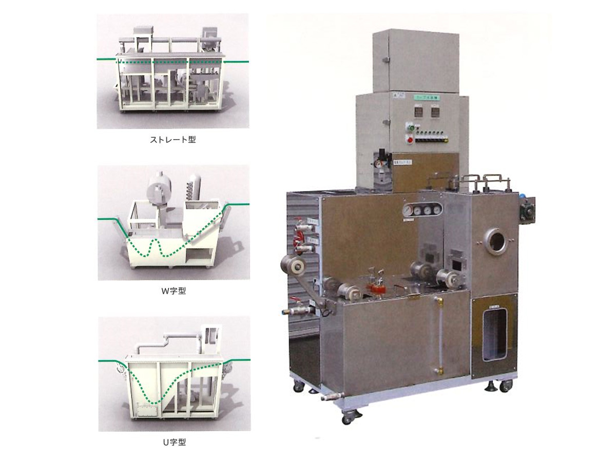 プレス機やリールなどの連動運転などで、フープ状態のまま連続して洗浄する装置です。炭化水素系・アルカリ系・水系に対応しております。